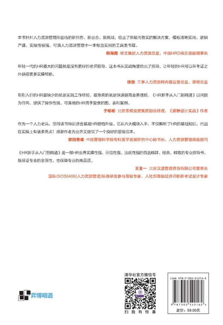 《hr新手从入门到精通》作为HR实用工具书,有图、有表、有工具、有制度、有流程、有案例、有方法、有方案、有文书。适合企业人力资源管理从业者,尤其是人力资源管理领域的新入门者,以及高校、职业院校管理类、秘书类等相关专业的师生阅读、使用。