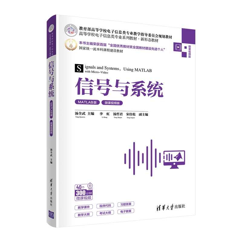 前言 “信号与系统”课程是电子信息类专业的一门重要的专业基础课程。本书是首批国家级一流本科课程“信号与系统”(宁夏大学)的建设教材,主要目标是适应我国高等教育全面开展新工科建设,加快推进教育现代化实施方案与高水平工科教育,提高工程人才培养能力,探索高等教育内涵式发展与产学研合作的高效途径。 本书主要讲述连续和离散信号的时域分析和频域分析,线性时不变系统的描述和特性,以及连续信号通过线性时不变系统的时域分析、实频域分析、复频域分析,离散信号通过线性时不变系统的时域分析、z域分析和系统的状态变量分析法。 本书根据信息科学技术发展的趋势,结合课程的优秀教学成果和基于MATLAB进行科学研究的优秀科研成果。本书内容突出基本理论、基本概念和基本方法,以MATLAB R2020a作为信号与系统分析的工具,注重典型题目的分析,一般例题和典型例题相结合。每章有自测题,自测题以填空题和选择题为主; 习题分为基础题和提高题; MATLAB习题可作为实验实训,以适应不同层次的学生。 本书的特色: (1) 由浅入深,循序渐进。以先基础后应用、先理论后实践、循序渐进的原则进行编排,便于读者学习和掌握MATLAB解决信号与系统的编程方法。 (2) 内容丰富,例题新颖。本书结合编者多年教学经验和使用MATLAB的经验,列举丰富的例题和应用实例,便于读者更好地理解和掌握信号与系统的数学概念、物理概念和工程概念。 (3) 理论简洁,实例典型。介绍信号与系统内容简洁,分析使用MATLAB方法和技巧,实际工程应用案例算法严谨,从而引导读者更好地用MATLAB解决信号与系统中的实...