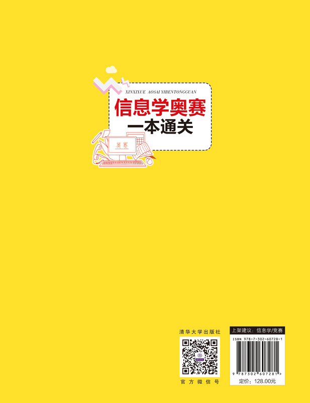 《信息学奥赛一本通关》共30 章分7 部分。其中前6 部分内容分别为编程平台介绍、计算机基础知识、从图形化编程到C++ 入门、数学知识基础、数据结构和算法补充与归纳。第七部分给出2019—202年CSP-J/S 真题及参考答案。本书基于图形化编程学习,详细介绍由图形化编程向C++ 代码编程过渡的系统知识,最终帮助读者提高参与信息学奥赛的水平。