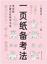 我们的一生中可能会经历各式各样的考试,比如中高考、考研考公、职业资格考试,等等。 但只要是考试,总归有难度。一方面,考生需要记忆大量的知识点;另一方面,对于很多考生来讲,备考的时间并不多。 本书将介绍一种够让人“记住大量知识又不会忘记”的特殊学习方法——一页纸备考法。有了这种方法,哪怕是不擅长学习的人,也可以记牢所学的知识,从而可以更顺利地通过考试。