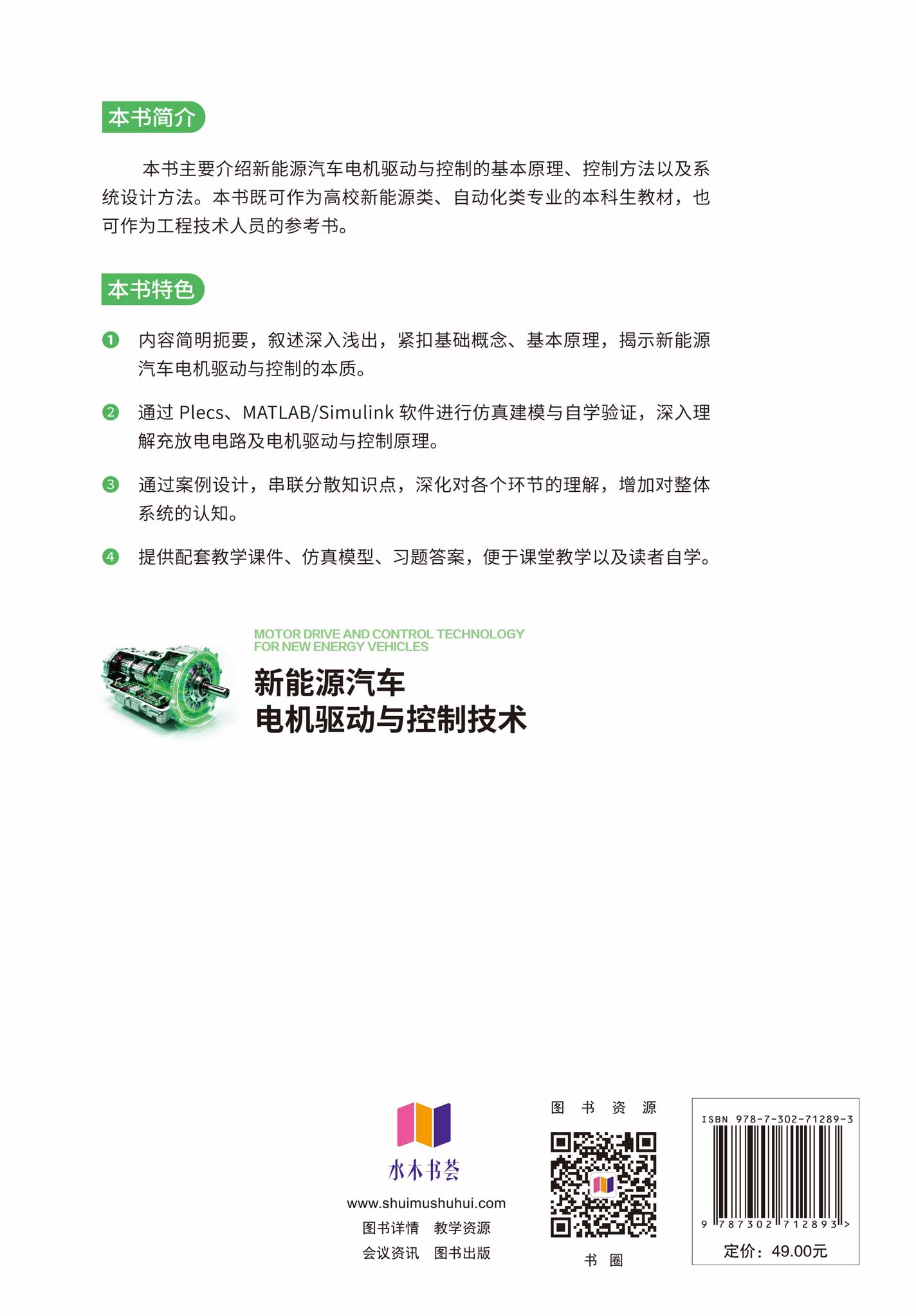 "(1) 内容简明扼要,叙述深入浅出,紧扣基础概念、基本原理,揭示新能源汽车电机驱动与控制的本质。