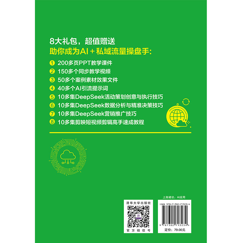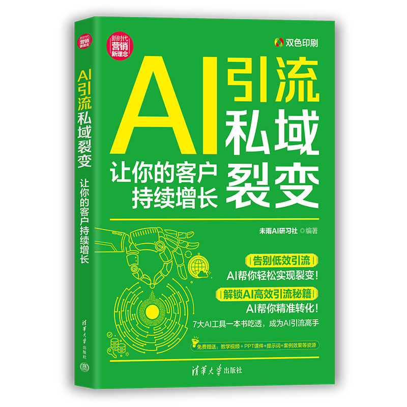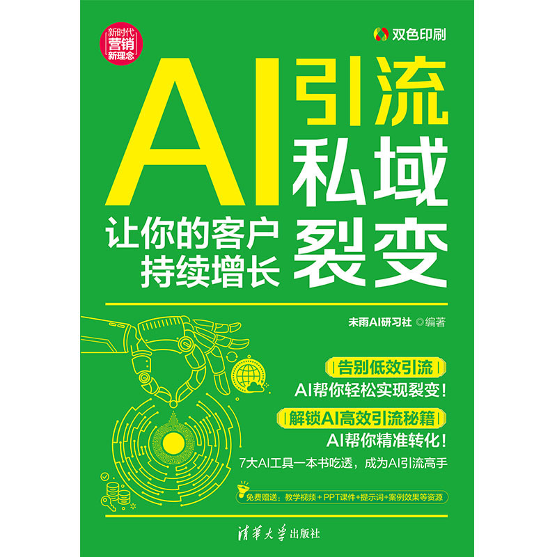 传统引流成本高、效率低,精准度不足。本书以技巧、工具、实操三大主线,覆盖热点追踪、文案创作、直播运营等全场景,结合 DeepSeek、Kimi等多款AI工具,助力读者搭建自动化引流体系,低成本实现客户精准触达,让流量主动涌入私域,破解“获客难”困局。