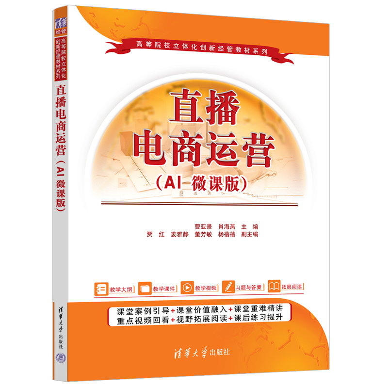 "《直播电商运营(AI 微课版)》围绕高等教育电子商务专业应用型人才培养目标,以企业直播运营活动为主线,突出直播运营岗位职业能力与职业素质的培养,贯彻“教、学、做、赛、创”五位一体和“岗、课、赛、证”融通的教学理念,紧跟直播电商行业发展趋势,深度融合人工智能技术,系统讲解直播电商的运营逻辑与实践方法。全书以“理论+案例+AI工具”为核心框架,突出应用性与创新性,涵盖直播电商全流程,并重点解析AI技术在行业中的落地场景,旨在培养具备数字化思维与智能运营能力的复合型人才。 《直播电商运营(AI 微课版)》根据OBE项目导向法,共分为九章。第一章是走进直播电商,阐述了直播电商的理论基础知识,以及行业发展与AI驱动的变革趋势。第二章至第四章是直播运营的前期准备,包括直播团队组建,探讨AI数字人主播与智能协作模式;直播选品与定价,结合AI大数据分析实现精准选品与动态定价;直播脚本与话术设计,简要介绍运用AI生成高转化脚本与智能互动话术。第五章至第八章是直播运营的技能实操,包括直播间场景搭建;直播电商运营策略;直播电商的风险与防范,聚焦AI弹幕分析、流量诊断与智能控场;直播电商的效果评估与改进,进行直播间推广及用户运营,直播数据分析及复盘诊断,以及利用AI数据分析优化运营策略。第九章通过珠宝首饰类和服装鞋帽类产品的直播案例,重点强调直播电商策略的应用。 《直播电商运营(AI 微课版)》内容深入浅出,注重实践操作技能的培养与提升,结合全国电子商务专业的各类比赛,实现“教赛一体,学用结合”,便于学生加强对岗位技能的理解和练习,并提供真实案例与实训指导,帮助学生掌握智能化直播运营的核心技能。使网商素养元素浸润课堂教学,实现课证融通、课赛融通。 为方便教师教学,《直播电商运营(AI 微课版)》配有内容丰富的教学资源,包括电子课件、教案、案例库及案例分析、习题及参考答案,可通过扫描书中的二维码获取。 "