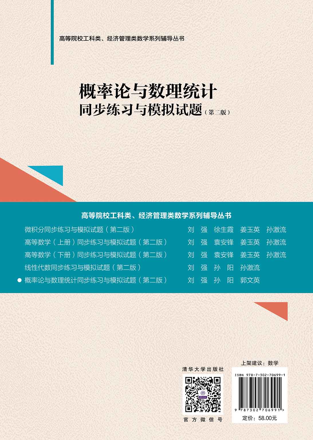 第二版前言 经济的高质量发展、社会的持续进步离不开一流本科人才的支撑,而一流本科人才的培养离不开大学数学课程的支撑.大学数学课程在落实立德树人根本任务,打造一流本科人才中扮演着不可或缺的角色. 高等院校工科类、经管类专业的数学课程主要包括“微积分”(或“高等数学”)、“线性代数”和“概率论与数理统计”等.2009年以来,在北京市教委的大力支持下,由首都经济贸易大学牵头,联合北京工商大学、北京联合大学、北京印刷学院等兄弟院校,立足国内工科类、经管类专业建设特点,致力于地方高校数学教育教学模式探索与改革,取得了一系列成果,先后两次荣获北京市教育教学成果奖. 本丛书自第一版发行以来,受到国内兄弟院校广大师生的一致好评,发行量达10余万册.其间收到了读者与同行的一些意见与建议,我们在教学过程中也发现了一些需要改进的地方.在清华大学出版社梁云慈编辑的建议下,我们着手修订了该系列教材.本次修订的内容主要有如下三个方面: 1. 打造新形态教材,包括录制了部分微课,增加了知识点讲解视频以及部分例题、习题讲解视频,增加了课外学习链接,搭建了课程资源库. 2. 调整与修订部分章节内容,包括数学概念定义的推敲,典型例题的优化,语言的润色等. 3. 增添了部分例题、习题,修订了教材中出现的个别错误,优化了题型结构. 在第二版教材修订过程中,得到了对外经济贸易大学刘立新教授、北京工商大学曹显兵教授、中央财经大学贾尚晖教授、北京工业大学薛留根教授、北方工业大学刘喜波教授、重庆工商大学陈义安教授、山西财经大学王俊新教授、北京印刷学院朱晓峰教授、广东财...